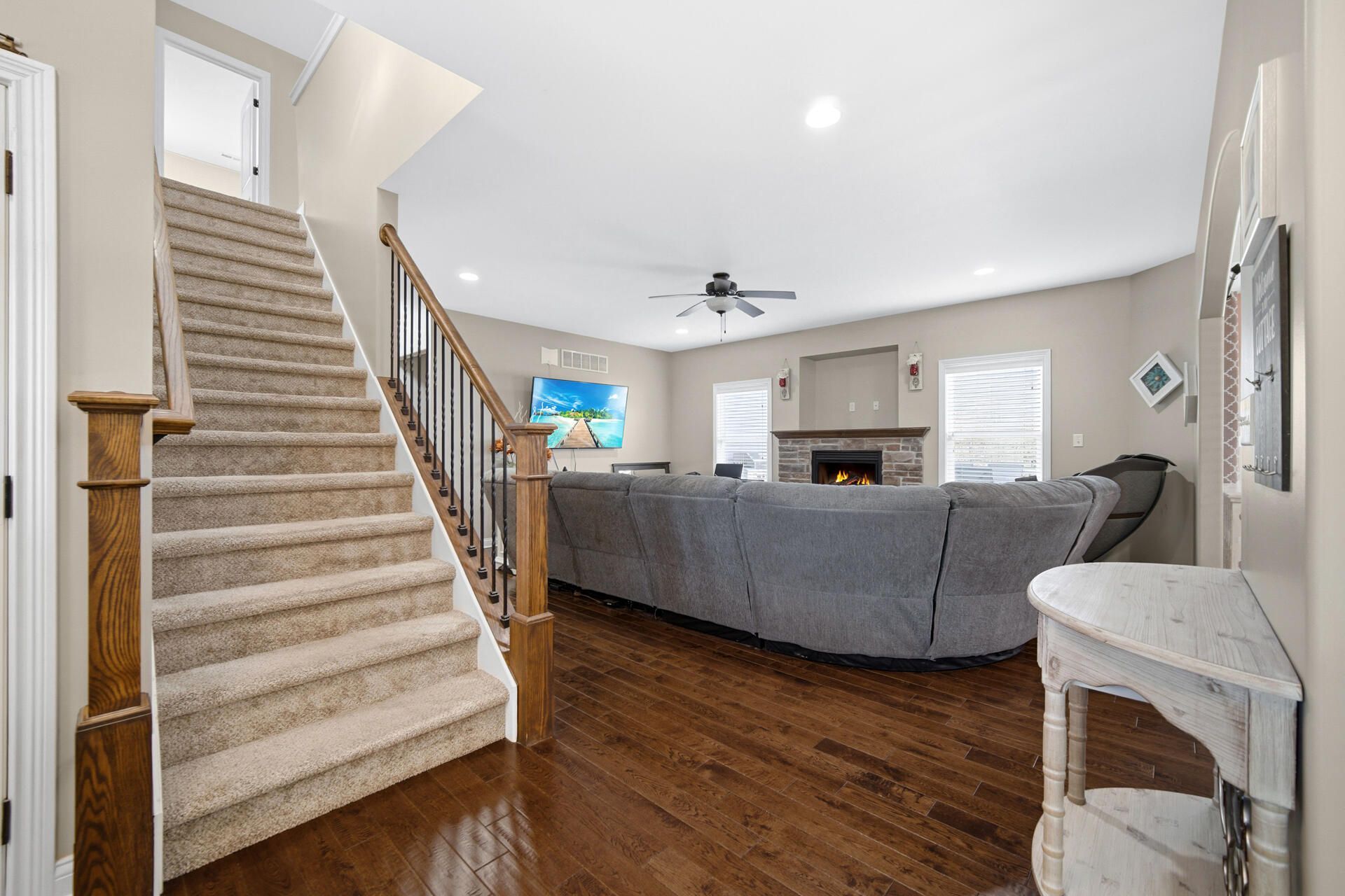 Welcome home! Check out this extremely well-maintained 2-story in Timberland! Enjoy your morning coffee on the covered front porch before stepping into the welcoming foyer, where you'll immediately notice the durable pre-finished hardwood floors that lead you to the open concept living room (gas fireplace, recessed lighting) and eat-in kitchen, featuring Kenmore stainless steel appliances, granite countertops, pot filler faucet, island/breakfast bar, pantry and dining area that walks out to the deck overlooking your pool & beautiful backyard! The stunning master has a vaulted ceiling and gorgeous bath en suite with jetted tub & walk-in shower (tiled surround), double vanity and 11x6 walk-in closet! A half bath & laundry room (quartz counter, LG washer & dryer stay) round out the main level, while your upstairs boasts four spacious bedrooms (all with walk-in closets), as well as a full guest bath! Your FINISHED daylight basement affords tons of extra space for entertaining, thanks to the large rec room (could serve as a playroom, home gym or theater), sixth bedroom (10x6.5 walk-in closet, egress), utility room for added storage potential and rough-in for an additional bathroom! Host friends for cookouts & kick it poolside this summer in your personal (fenced) backyard retreat with HEATED pool & newer three-tier composite deck with nothing but wooded privacy beyond your property line (so no back neighbors)! The attached 3-car garage has epoxied floors, a Tesla charger and insulated overhead doors! More features include a TerraBloom whole-house booster fan connected to the HVAC, nine-step reverse osmosis water treatment system, a whole house humidifier, water softener, HUGE driveway & so much more! Situated in a great subdivision within Duneland schools, a short drive from the Indiana Dunes National Park and downtown Chesterton (check out the European Market this May) and just minutes from the Toll Road and I-80/94, making your commute to Chicago a breeze!